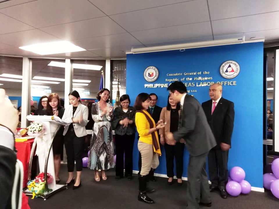 About 50 individuals and associations in Hong Kong were conferred plaques and certificates of recognition all signed by Labor Attache Jalilo dela Torre. They included non-Filipino partners of Polo like former Hong Kong legislator Emily Lau and heads of non-government organizations like the Mission for Migrant Workers, Bethune House Migrant Women's Refuge, Card Hong Kong and Enrich.